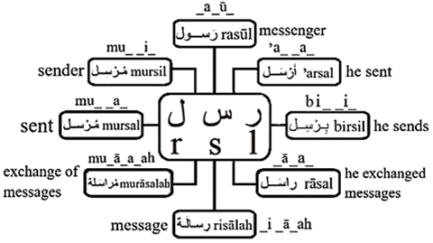 Here is another example of words derived from the consonantal root ر – س – ل  (r – s – l):
